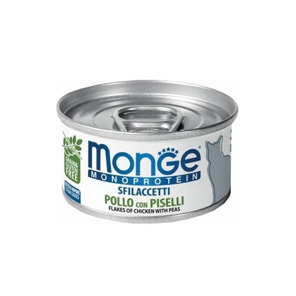 کنسرو گربه بالغ مونژه با طعم مرغ و نخود فرنگی - وزن (80 گرم)