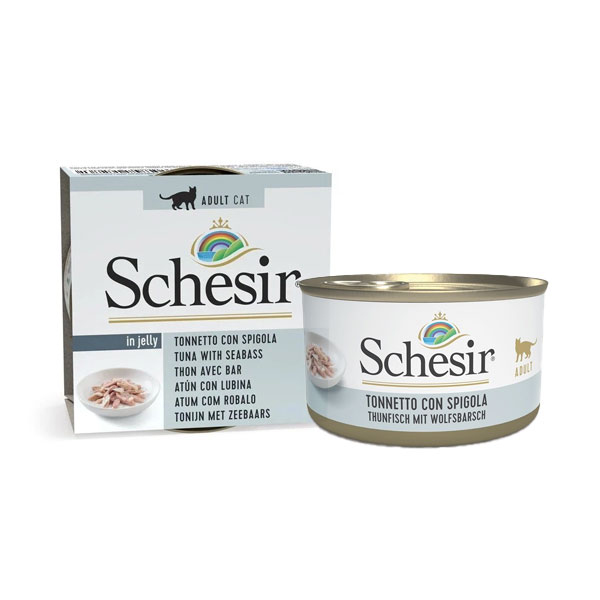 کنسرو گربه با طعم ماهی تن و سیباس در ژله شسیر - وزن (85 گرم)