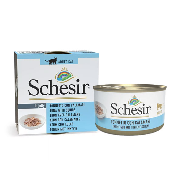 کنسرو گربه با طعم ماهی تن و ماهی مرکب در ژله شسیر - وزن (85 گرم)