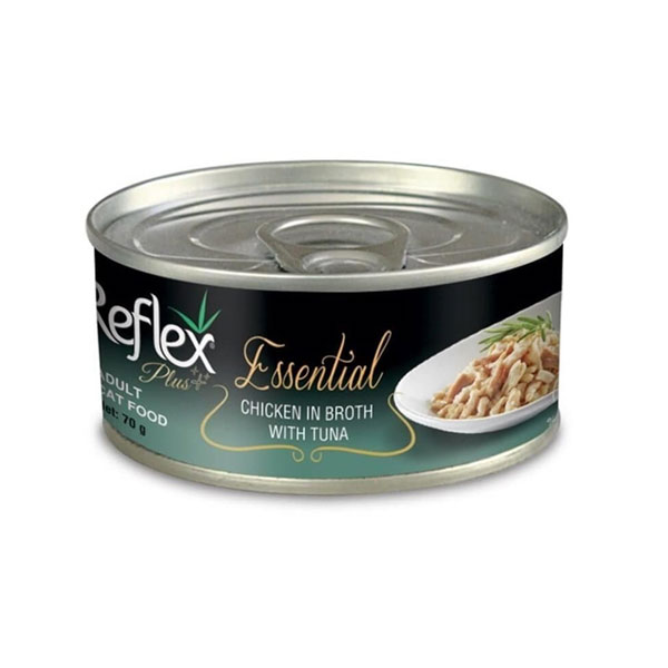 کنسرو گربه رفلکس پلاس طعم مرغ در آب گوشت با ماهی تن - وزن (70 گرم)
