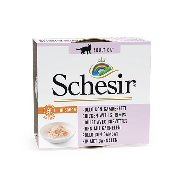 این محصول ویژه گربه های بالغ می باشد و حاوی گوشت مرغ و میگوی تازه است که در سس طبیعی بخار پز شده است. طرز تهیه این کنسروها مشابه طرز تهیه کنسروهای انسانی می باشد و در تولید آنها از مواد اولیه بسیار با کیفیت و 100% طبیعی بهره گرفته شده است.