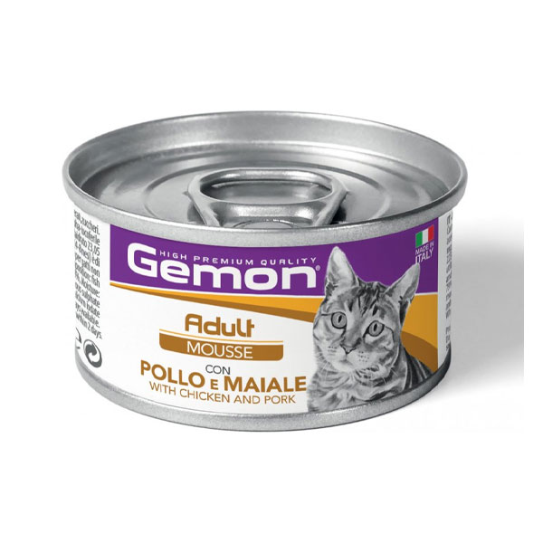 کنسرو گربه مونژه Gemon طعم مرغ و گوشت خوک در موس - وزن (85 گرم)