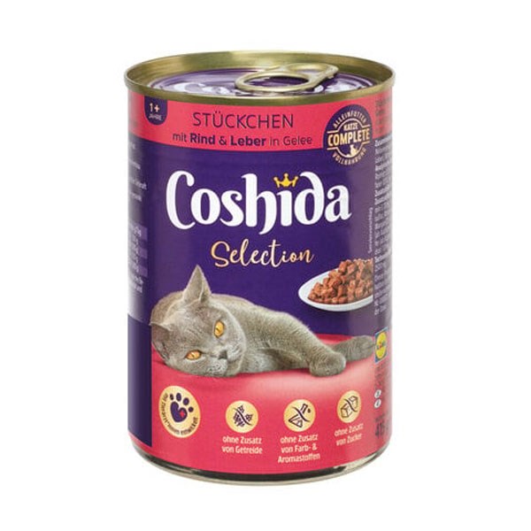 کنسرو گربه کوشیدا گوشت گاو و جگر در ژله - وزن (415 گرم)