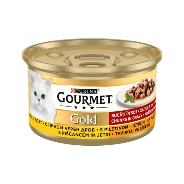 کنسرو گورمت گلد گریوی با طعم مرغ و جگر - پورینا (85 گرم)